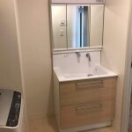 建築当時の洗面化粧台。30年ほど使用していた為全体的に古くなっておりました。