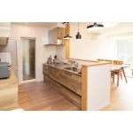 ・カウンターを作り、ご家族で集う空間の創造 ・レンジフード隣に収納棚を作り収納スペースを確保 ・調味料置きを作成しすぐ取り出しができる料理しやすい環境 ・隣に1坪のパントリーを作り、荷物を置かずすっきり収納