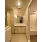 内装工事完了後すべて元に戻し設置致します。洗面台上の照明が管球切れになってしまった為併せて交換致しております。洗面台のボールが深く広くなっているのがお写真で分かるかと思われます。