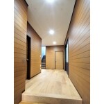 廊下を含むほぼすべての一階部分の床をめくりコンクリートをうち、地面からの湿気を防ぐことを提案。各部屋を結ぶパイプラインである廊下の居心地の良さの向上が図れる建材を提案しました。
