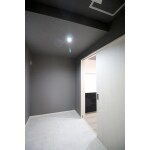 キッチン、ランドリースペースのどちらからでもアクセス可能な家事ラク動線パントリーです。 ただの収納庫だからと妥協はしません! オシャレなクロス&扉で気分も上がります!