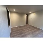 スポットライトが照らし出す木目が美しいフロアーのリビング