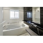 艶感のあるブラックの壁面が印象的な高級感漂う浴室
