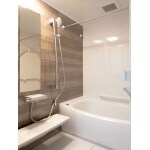 T社のマンションリモデル Kタイプを設置いたしました。 設備の劣化でリフォームを決断したとの事で、こだわった浴室というよりは、スタンダードで使い勝手の良い浴室になるように仕様選択していきました。 その中でもアクセントパネルと床をブラウン・ベージュ系にすることで統一感が生まれ、オシャレな浴室空間になりました。