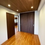 リビングからバリアフリーにし、フローリングにしました。押入れをクローゼットにし、寝室の照明は調光調色ダウンライトを計画しました。