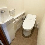 専用の手洗いを設置し、同面にリモコンや紙巻器を設置することにより、空間を有効的に活用しました。 トイレのデザインもシックな空間になるように努めました。