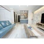 キッチンの吊戸棚を撤去し、アイアンシェルフに変更して採光を確保しました。 壁・床の色はホワイトをメインにし、間接照明を利用して、デザインを楽しめる空間になりました。