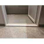 扉の位置は変更しておりません。施工前のお風呂は向かって左側に浴槽がありました。また入る際に段差があり、またいで浴室まで入らなければならない状態でした。