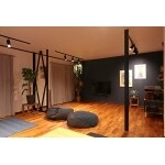 LDKに隣接した和室の壁を取り払い、空間に取り込む事で24帖の大空間を確保。和室の一部は独立した洋室に変身しました。 リビングの一角とキッチンの背面に張ったOSB合板は、DIYがお得意なご主人が家具や棚でアレンジできるスペースに。構造上残ってしまう筋交いや柱も、黒に塗装する事で空間に馴染み良いアクセントとなっています。