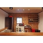 OSBボードの壁面でお洒落で実用的なキッチンに。オープン棚はお施主様ご自身で設置されました。