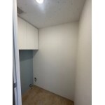 背面の収納は、高さを抑えたキャビネットにて限りのある空間でもしっかりとした収納が可能となっております。背面にアクセントになるお色味をいれることで、可愛いらしいトイレ空間に仕上がりました。