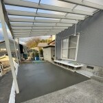 駐車場のコンクリート舗装工事を行い、雨にぬれず使いやすいように可能な限り広めなカーポートを設置いたしました。