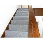 小さなお孫さんがよく遊びにいらっしゃるとのことでしたので、汚れてもその部分だけ交換出来るタイルカーペットへの張り替えを成案させて頂きました。 階段にもノンスリップを取り付けました。