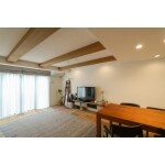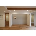 天井の高さが少し低めのお家だったため、梁を見せてできるだけ高く・広く見せられるようにご提案しました。 また、ソファスペースはヌック風にお籠り感を出したり、デスクスペースも少し入り込んだ空間にすることで視線がすべて通らず家族の気配を感じられるような設計にしました。