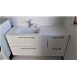 6つの基本プランからご希望のカスタマイズが出来るエスクアで、こだわりの詰まった洗面台にリフォームしました。 排水口周りや歯ブラシの汚れや菌をおさえるきれい除菌水をご提案しました。また「抗菌・防カビ樹脂」や「らくポイヘアキャッチャー」の排水口でお掃除もしやすい形の洗面台をご提案しました。