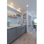奥さまの好きなインテリアイメージから、温もりのあるウッドワンのキッチンをご提案させて頂きました。ショールームで気に入られたアイランド作業台を設置するため、対面から壁付けにキッチンの配置を変更。テラコッタ調のフロアタイルでキッチンを緩やかにゾーニングし見ているだけで心が満たされる空間がひろがります。