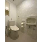 既存のトイレは手洗い無タンクで別付の埋込手洗いがある、ゆったりとしたトイレ空間です。