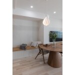 居心地の良い「ヌック」があるダイニング。予想外の梁がベンチを囲むデザインとなり非日常を感じられる空間となりました。