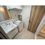 洗濯機と洗面台が横並びの為洗濯機が使いずらく、廊下に面した形で配置されています