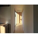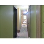 既設の中廊下の写真です。西側を見ています。トイレのドアが見えます。