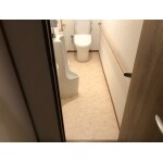 両壁に手摺がありますので、トイレの座ったり立ったりという動作の手助けをしてくれます。 こちらのトイレはコスパもよくとても人気です。 タイルに比べると掃除もしやすくなりました。