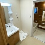 コンパクトな設計・配置にすることによって、洗面所兼脱衣所スペースが作れるよう間取り変更しました。
