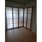 中野区マンション 和室を洋室にし、L型上吊り引き戸で採光確保