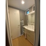 洗面台の交換と、一部の壁紙貼替えを考えていらっしゃいました。 洗面台は掃除しやすく、収納が豊富な商品をご希望でした。