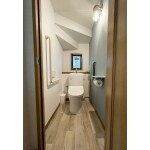 お気に入りの壁紙で明るいインテリアの節水タンクレストイレに。