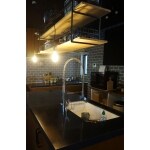 シンクと天板がシームレスで一体となっていましたので、既存キッチンの上から新しいカウンターを施工しています。小さなステップを作り、お隣のお部屋へアクセスできるようにしています。