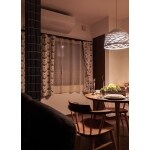 シンプルな生活がしたい。というお言葉をいただいておりましたので、和室二間と両端にありました縁側を生活空間に取り込むことで、外の緑がより感じられ、風が流れる空間を計画しました。 そして窓に関しても防犯に備え、掃出しの大きな窓から腰窓ペアガラスに取替、防犯格子を取り入れました。 愛犬との生活という事で、玄関とリビングに愛犬のエリアを作りました。 青色がお好き!という事で、北欧のイメージを取り込み、青色が寒々しく感じられないように、四季を通して青を感じられる配色を心掛けました。 ダイニングでの時間が長いという事で、昼白色から電球色が変えられる照明器具も存在感があります。