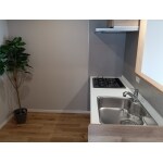 ナチュラルテイストのキッチンです。床の色とキッチンの色を合わせているため、よりナチュラル感がでていて、一体感も生まれる仕様になっています。