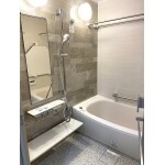 ベージュ系の色で統一された温かみのある浴室になりました。 TOTOのマンションリモデルはお掃除ラクラクほっカラリ床で入った瞬間から心地よく親水パワーで掃除が楽です。