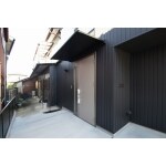 既存の離れを取り壊し新築したオーディオルームの外壁はブラックのガルバリウム鋼板。無駄のないデザインが目を引く印象です。