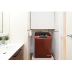 もともと広い洗面化粧台をお使いでしたが、より収納を増やしたいとのご要望でしたので、できるだけ多くのキャビネットを設置できるようスペースを最大限に生かしたプランをご提案しました。 また、洗濯機上の収納スペースには可動棚を設置し、白のロールスクリーンを取り付けることで圧迫感なくすっきりとした印象に仕上げました。