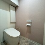 タンクレストイレで広々と清掃性も向上しました。また、背面に収納を充実させました。