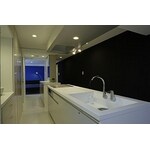 (旧株式会社ダイチでの事例です。)14.0m×3.7mの南北に細長い57.8㎡の1室をいかに有効に使うかが今回のテーマです。夫婦+幼児という家族構成から、家族内プライバシーよりも、ワンルーム的な空間の広がりを志向し、南北に長い空間を仕切らず、ひとつながりであることが認識できる空間計画をしました。寝室や洗面脱衣スペースも普段は開放し、寝室からリビングまでの14mの空間を一体的に扱い、北端の壁面からも南面が認識できる平面構成にしています。