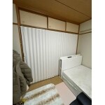 アコーディオンカーテンの取付を行い、自由自在に収納ができるようになりました。 襖に比べ適宜調節が可能ですので自由自在にご使用いただけます。