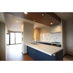 オールステンレスのキッチン、吊戸は昇降式で使いやすく