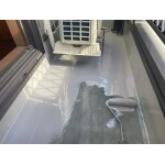 市販の塗料を絶縁し、上から防水材料を2度塗り、さらにトップコートを重ね工事完成です。ツヤのあるピカピカのバルコニーになりました。