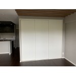元々和室だった空間をリビングとして拡張しました。天井にはルーバーを取り入れ、立体感をもたせてとてもおしゃれな空間に仕上がりました。照明はシーリングライトを使用せず、全てダウンライトを使用したことにより広い空間を作れました。