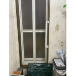 鏡の横に縦方向の手摺を設置しました。段差を上がるときに、手摺があるのとないとでは安心感が全然違います。これで、靴を脱ぎ履きするのに座らずそのままスムーズに脱ぎ履きできるかと思います。