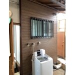 施工後。配管工事をして壁だしの洗濯水栓にしました。また格子付き浴室窓なので防犯性も高く、また断熱性も高くなりました。