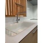 キッチンの背面にはタモ無垢集成材でオープン棚をご提案・施工させていただきました。 一段目には電化製品などを置かれる予定でしたので、重たいものを置かれても大丈夫なよう補強して固定棚を設置。 二段目と三段目は食器などのサイズによって棚板の高さを変えれるように可動棚とさせていただきました。