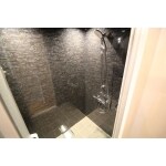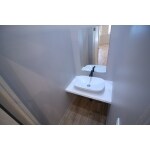 天井・壁は薄いグレー系で統一し、床にはナチュラルな木目調の塩ビタイルを貼りました。 アクセントのエコカラットは白系のもの施工させていただきました!