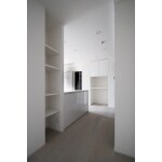 キッチンはデザイン・機能面も充実しているメーカーをご採用いただきました。ブラックでまとまっているため、現場の納まりもラインが揃うように意識しました。 また、手前のカウンターは家具屋さんでのフルオーダー造作となっており、天板と側板がL字となるように納まっています。軽やかな色合いですが、重みのあるしっかりとしたカウンターとなりました。
