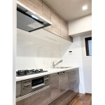/ その他採用機器・設備:扉グラセウッドグレージュ柄 3つ口ガスコンロ 水なし片面焼きグリル付き 浄水器蛇口一体型 レンジフードフラットスリムレンジフード 食洗機あり