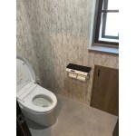 壁と床のタイルを撤去し下地処理を施しました。 そこからクロス、フロアタイル仕上げへと施工させていただきました。 また紙巻器と一体型のインテリアリモコンを採用させていただき、スッキリとした仕上りとなりました。