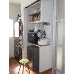 既製品のカップボードの設置より、お施主様ご要望に合わせやすい造作棚設置をご提案いたしました。