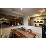 住み替えのタイミングで、ご夫婦二人だけの住まいに。しばしばホームパーティを開催される生活スタイルに合わせ、廊下とリビングの壁を思い切って撤去した一体型のLDKへ間取り変更しました。一体型にすることで、リビング空間を拡張しつつ、動線をコンパクトに描くことができます。また、部屋ごとに発生する寒暖差も解消できました。玄関から入って正面に見えるキッチンは、エンドパネルのサイズ等にこだわり、手元が見えないように設計しています。ダイニングに設置したオーダーミラーは、落ち着いた大人の空間を演出できるよう、グレーミラーを採用。鏡への映り込みによって、さらに空間の広がりを感じる効果もあります。